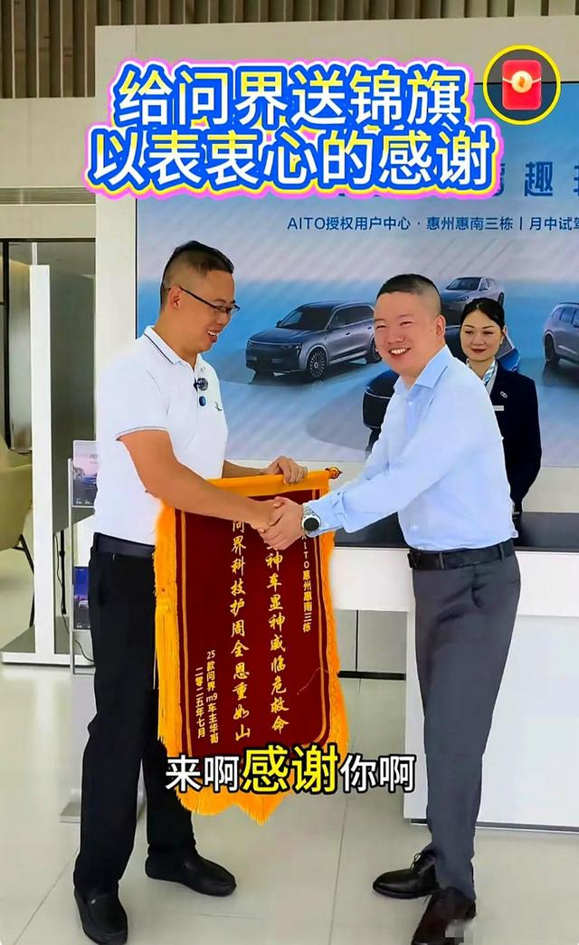 前两天我就看到了一个问界M9车主去鸿蒙智行用户交付中心送锦旗了。